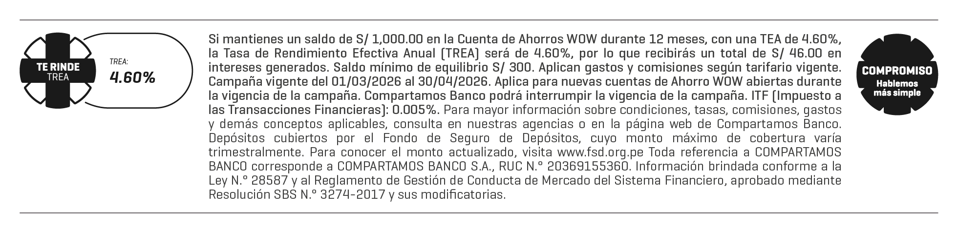 No se pueden abrir cuentas WOW ni participar de los sorteos que se realicen o campañas con los desembolsos de créditos Compartamos.