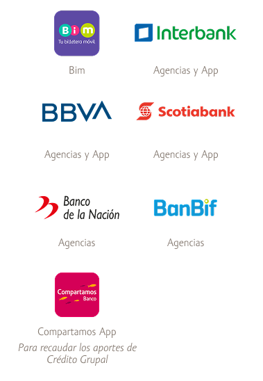 Paga tus cuotas de crédito grupal en los más de 13,000 agentes de Kasnet, Interbank y BBVA a nivel nacional.