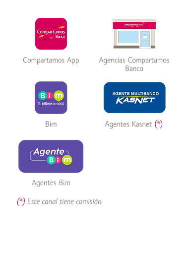 Con Bim además de desembolsar tu crédito y pagar tus cuotas, envía dinero, paga servicios, recarga celulares, paga proveedores, entre otros.