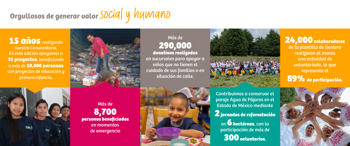 Nuestras causas son la primera infancia y la educación. Nuestras líneas de acción son la forma en la que los colaboradores de Gentera pueden participar: donación, voluntariado y apoyo en contingencias