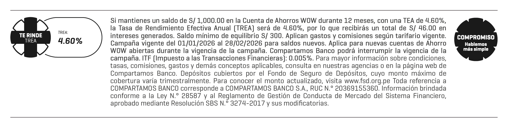 No se pueden abrir cuentas WOW ni participar de los sorteos que se realicen o campañas con los desembolsos de créditos Compartamos.