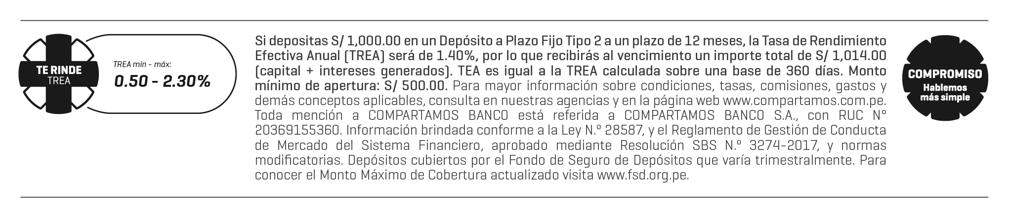- Seguridad: Estamos cubiertos por el Fondo de Seguro de Depósito (FSD) supervisado por la SBS.